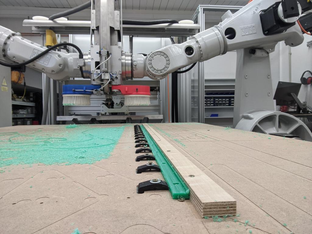 The main output of the project is a tested robotic workstation with two cooperating robots for the manipulation and machining of panel components, including complete technical documentation.